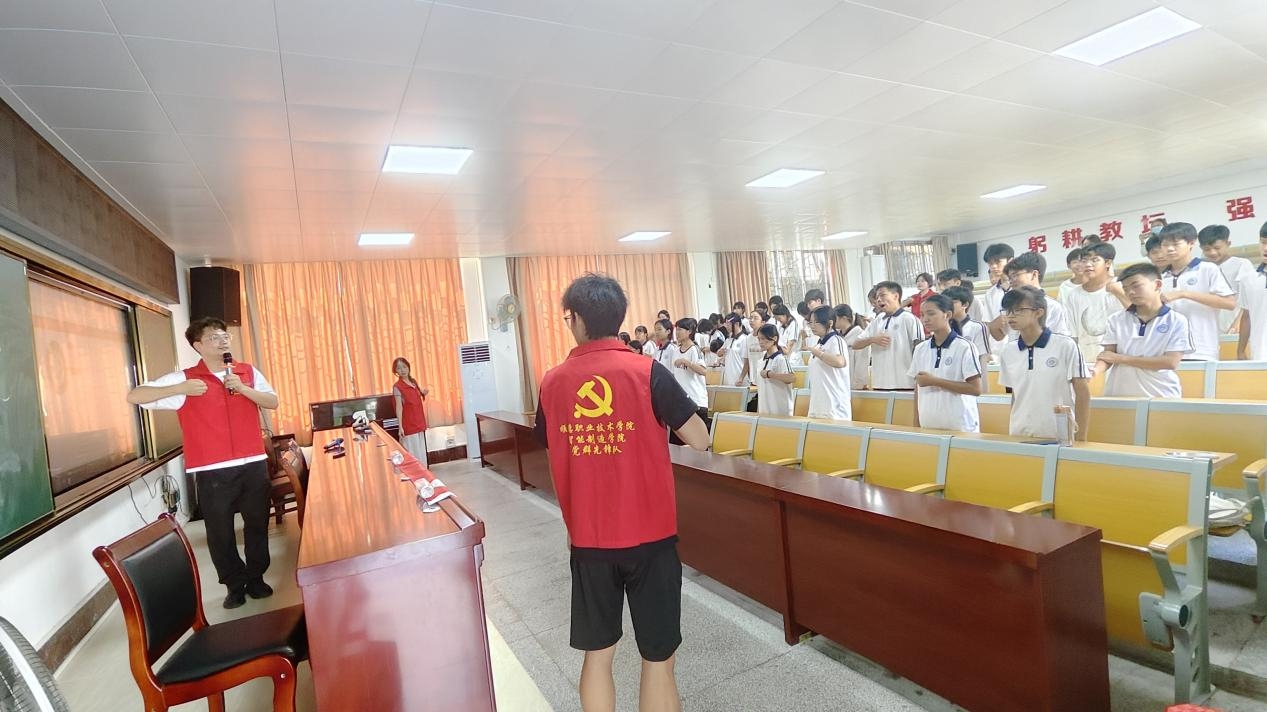 六都镇人民政府大门前的摊位,智能制造学院的师生们支起临时维修台,为居民提供家电义修服务。嗡嗡作响的老式风扇、煮不熟饭的电饭煲、哑了二十年的古董收音机......38℃的烈日炎炎下,师生们两天内让100余件罢工的家电重获新生,为80余户家庭省下进城维修的奔波与近千元的维修支出。在维修队忙碌工作的同时,队员还走进当地中学,开设家庭用电安全实训课,通过展示违规电器、放映演示湿手触电、电线老化短路等危险场景,配合典型案例,给学生们科普安全用电知识。