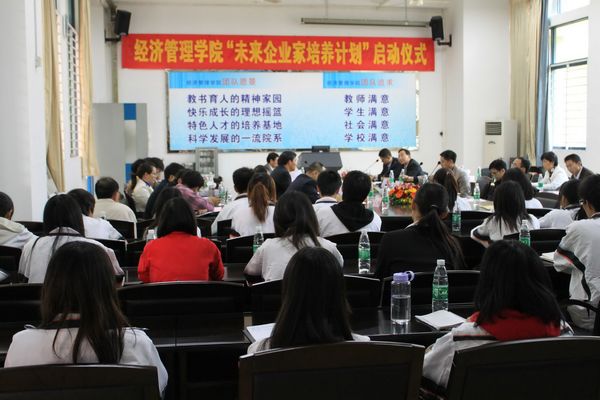 为了提高经管类人才培养质量,创新高职人才培养模式,打造经济管理学院办学品牌,为顺德经济社会的可持续发展提供人才支撑。12月9日下午3点半,经济管理学院举行了“未来企业家培养计划”启动仪式。顺德区人才服务中心负责人、顺德区组织部廖海标科长,顺德职业技术学院纪委谭谦章书记,星光珠宝金行有限公司董事长周会祥、圣托网总经理李志勤、顺德北滘港总经理田方人等7位顺德企业家代表,经济管理学院相关部门负责人、学生指导教师及参与本次“未来企业家培养计划”的2009级和2010级学生共55人参加了会议。