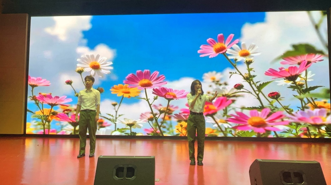 分享结束后,新生代表共同观看了国赛一等奖作品《读中国》的决赛视频,并欣赏了吴敏莹与郭凯文同学现场演绎省赛二等奖作品《天路》。