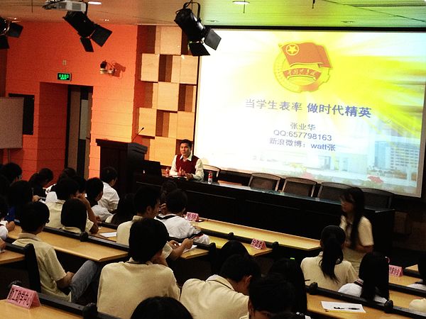 交流会上,各位老师和学生干部代表以生动的鲜明的案例,从学生干部的特点、工作的意义到学生干部应具备的四种能力、五个有、六个意识,从学生干部的定位和要求,到活动策划的技巧、日常管理的技巧等,就如何当好学生干部,从理论和操作层面进行了精彩的报告。交流会过程中,两位老师与到会学生热情互动,几次将会场气氛推向高潮。