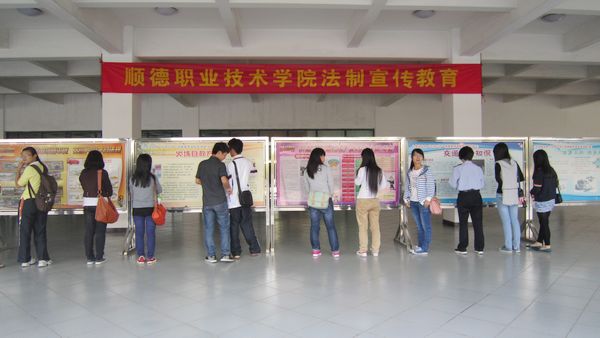 为进一步提高广大师生们的安全意识和防范能力,我处根据本次交通安全宣传月系列活动的安排,与顺德区大良派出所联系,在11月6日引入校外法制教育宣传展板进校园活动,宣传展板已摆放在人流密集的学校图书馆门前为广大师生展出。