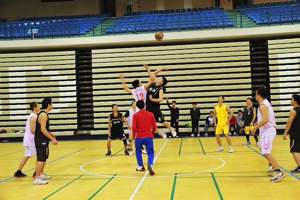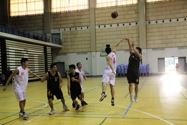 比赛在校梁銶琚堂举行。随着裁判的哨响,整个球场就充满了愉快而紧张的气氛,球员的激情全都淋漓尽致的体现在篮球场上。比赛中,双方队员实力相当,奋力拼杀,你追我赶,打得非常开心。每个队员都积极跑位,为队友作掩护,还时不时有精妙的传球、漂亮的配合和精彩地上篮。最后taptap篮球队的小伙子们以两分优势获胜。