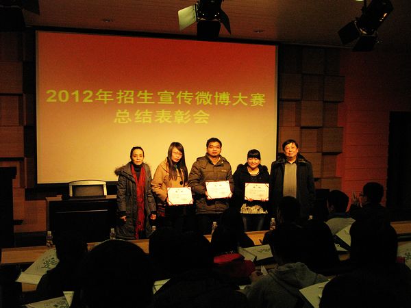 为了更好地发动全校师生宣传taptap校园环境和校园文化,塑造良好的校园形象,全面提升学校知名度,并引起社会的广泛关注,以吸引更多高考优质生源报考taptap,教务处在2012年6月份起举办“魅力顺职•博揽英才”招生宣传微博大赛。在近4个月的活动期间,各部门师生踊跃参与,涌现出一批语言优美、图文并茂的原创微博作品。为总结本次大赛经验,表彰优秀,教务处在1月8日晚组织召开“魅力顺职 博揽英才”招生宣传微博大赛总结表彰会,来自各院系的招生工作小组专干、学生共170多人参加了会议。