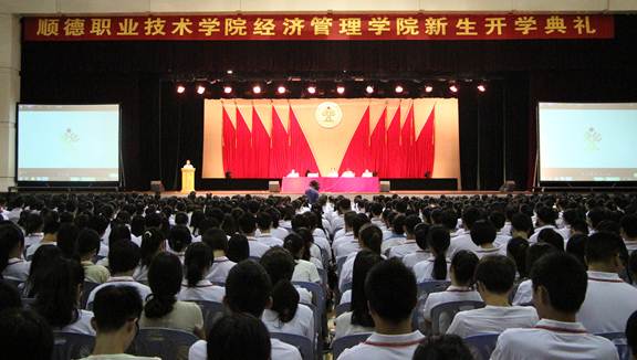 9月16日上午,经济管理学院在梁銶琚堂隆重举行顺德职业技术学院经济管理学院2013级新生开学典礼。顺德职业技术学院党委副书记、经济管理学院院长齐振彪、经济管理学院相关负责人、校外著名企业家胡键、经管学院各专业教研室负责人、辅导员、班主任等出席开学典礼。经济管理学院1121名2013级新生及班主任助理参加本次典礼。