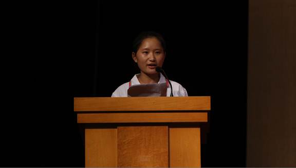 随后,2013级学生代表文彬彬进行发言。文彬彬首先向学院领导和老师的重视和关怀表示感谢;然后表达了作为一名顺职院经管学院学生的自豪之情;最后,她代表经管学院2013级1100多名新生向学院领导和老师保证不会辜负他们的期望,会努力珍惜大学美好时光,努力学习,争当国家和社会的人才栋梁。文彬彬的发言展现了2013级新生良好、积极向上的精神风貌。