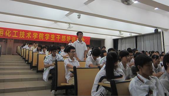 为加强学生的自我管理、自我教育、自我服务能力,充分发挥学生干部在全员育人工作的重要作用,应用化工技术学院于10月29日晚组织开展了学生干部培训大会,督导室负责人、校团委负责人、化工学院学生工作负责人、辅导员老师及化工学院200多名学生干部参加了培训会。