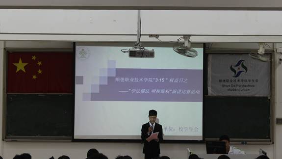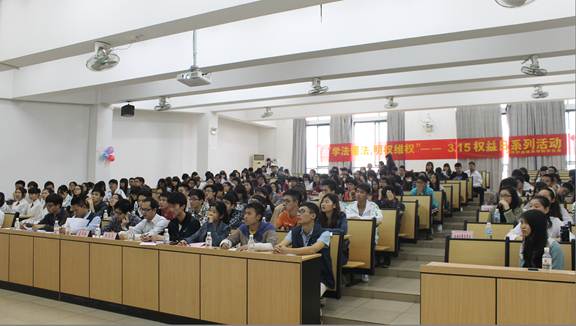 其中,4月2日下午的“3.15”权益日演讲比赛在教学楼11栋201室进行,校团委相关老师、各学院学生会指导老师及200多名同学观看了比赛。来自9个学院的10名同学围绕“学法懂法明权维权”主题,结合自身的消费实际、央视315晚会的相关内容及社会普遍的维权案例进行了演讲,让在场的师生再一次普及了消费者权益保护的相关法律、欣赏了语言与演讲的艺术魅力。比赛期间还穿插了消费者权益保护方面的知识有奖竞猜活动,同学们热情高涨,纷纷举手抢答,加深了对权益保护相关知识的理解。