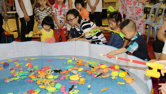 游园会融趣味性、知识性、科学性为一体,包括了“套圈”、“快投计分篮球”、“射击”、“转呼啦圈”、“垂钓”、“跳绳”、“DIY蔬菜盆栽”、“自油自画”等形式多样的游戏。学校工会特别为3周岁以下的小朋友提供海洋球泳池休憩、玩耍。孩子们不仅兴高采烈地参加每个活动区的游戏,玩得乐不思蜀,各自拿着活动所得的奖品,充分享受着节日的快乐与幸福,更可以和“唐老鸭”、“米老鼠”等四位卡通人物零距离接触、合影;有的小朋友还自己穿上“蝙蝠侠”的卡通服饰在活动现场表演一番。家长和孩子们在“温馨校园·伴我成长”照片墙上寻找自己在上一年六一活动中的足迹和笑容,感受着成长与童年的快乐。孩子们天真、精彩的表现和爸爸妈妈、爷爷奶奶洋溢在脸上的重温童乐的喜悦相映成趣,呐喊声、欢呼声此起彼伏,充满在活动现场的每一个角落。