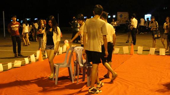 活动当晚,以一场劲歌热舞揭开序幕。紧接着,“一拍到底”,“爆旋陀螺”,“贴猪鼻子”等摊位游戏陆续开放。这些经典的童年游戏使大家玩得非常尽兴。除此之外,由于礼品丰富,兑奖区更是挤满了人。此次活动突破了传统的形式,让同学们可以一边玩游戏一边观看节目。