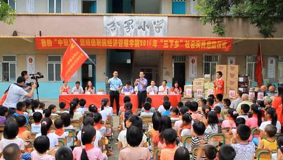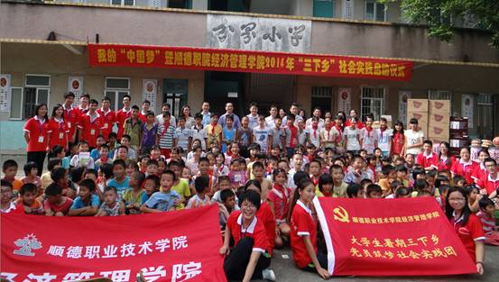 7月11日下午,顺德职业技术学院经济管理学院2014年大学生暑期“三下乡”社会实践启动仪式在湛江市遂溪县遂城镇分界村分界小学隆重举行。湛江团市委副书记郑克芬、学校部负责人许剑飞;遂溪团县委书记李裕宏、副书记陈春燕;遂城镇党委委员卜永佳、分界村党支部书记陈兴群;taptap经济管理学院团委负责人及30名师生志愿者以及分界小学全体师生共约300人参加了本次活动。