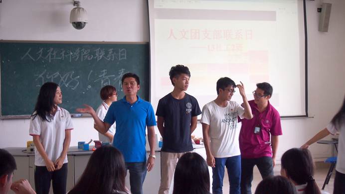 9月18日下午,由校团委主办,人文社科学院团委承办的以“你好,青春”为主题的团支部联系日活动在2栋301课室进行。校团委负责人及相关老师、人文社科学院党总支负责人、全体辅导员、校团委学生干部代表、13级社会工作2班团支部全体成员共40余人参加了本次活动。