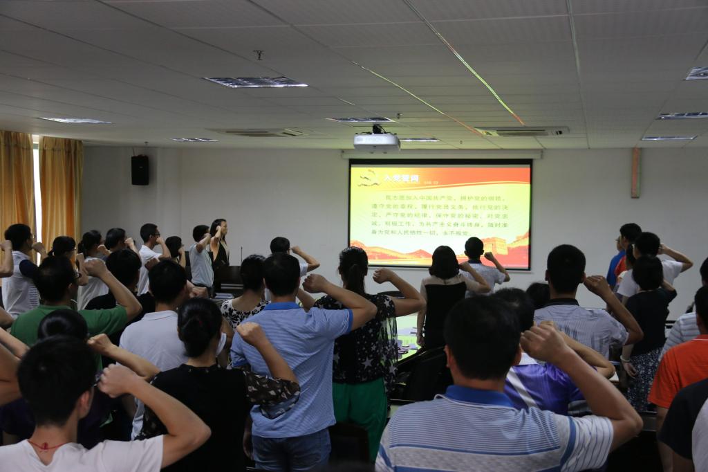 最后,在甘慕仪处长的带领下,电信学院全体与会党员重温入党誓词,本次重温入党誓词环节不仅提醒着每一位党员始终要把党的思想建设放在首位,以尊崇党章、遵守党规为基本要求,坚持用习近平总书记系列重要讲话精神统一思想,武装头脑、指导行动;强化了党员的宗旨意识,党员的群众观念意识、服务意识。而且还提醒着党员在实际工作中要坚持学用结合,知行合一,自觉践行党章要求,努力做讲政治、有信念,讲规矩、有纪律,讲道德、有品行,讲奉献、有作为的合格党员。
