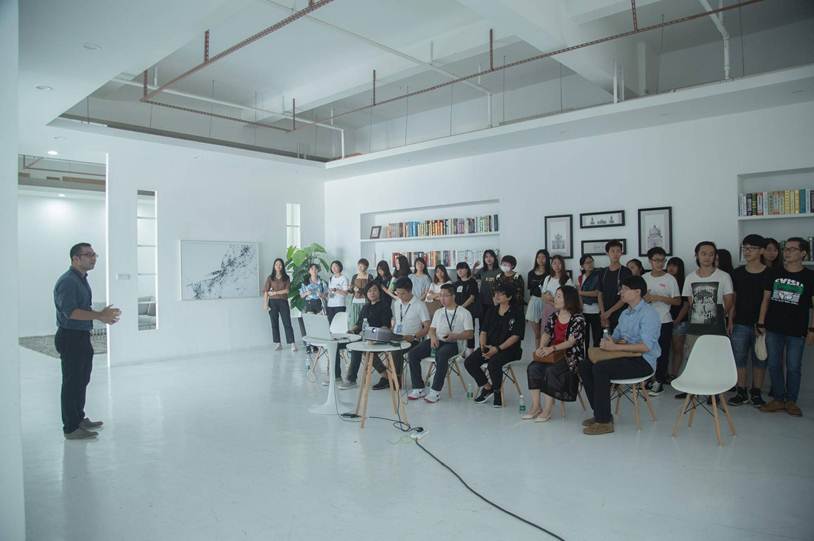 中山旭升电商视觉中心运营总监罗振江为设计学院师生介绍该拍摄基地