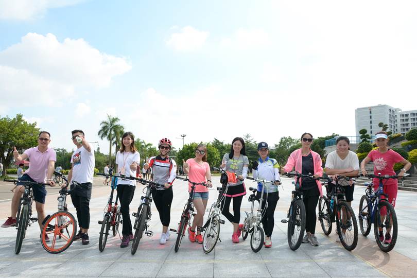 7月11日下午,taptap教职工自行车协会在梁銶琚礼堂前举行成立仪式暨首届“环行顺职”骑行活动。学校工会副主席余绍霞、工会工作人员以及教工自行车协会40余会员出席此次活动。