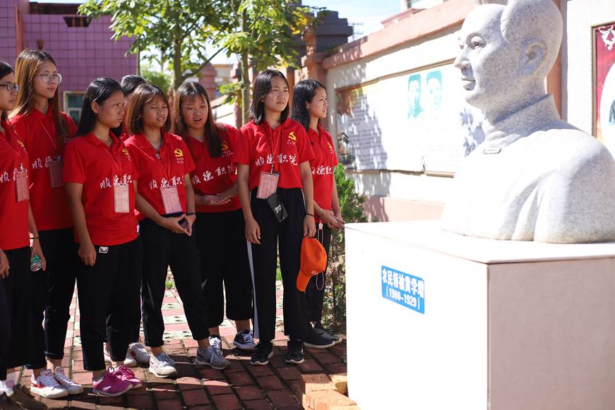 7月27日上午,顺德职业技术学院经济管理学院党员精准扶贫“三下乡”社会实践团队师生全体53人,来到湛江市乐民镇敦文村黄学增纪念亭红色教育基地进行参观学习。