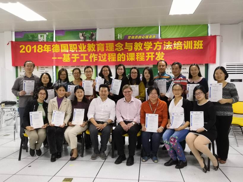 本期培训包含两个主要环节:一、基于工作过程的课程开发培训;二、德国教学理念和教学方法研讨会。11月8-21号,来自学校8个二级学院近60位专业骨干教师参加分阶段系统培训。参加培训的教师反馈,培训的整体实施过程,充分体现了“基于工作过程的课程开发”这一主题,将转变学员教育教学理念,传授教学方法作为实际工作任务,运用“基于工作过程的课程开发技术”对本次课程内容进行了开发和组织实施,收到学员老师们的一致好评。通过培训检查评估的教师获得了相应阶段证书。