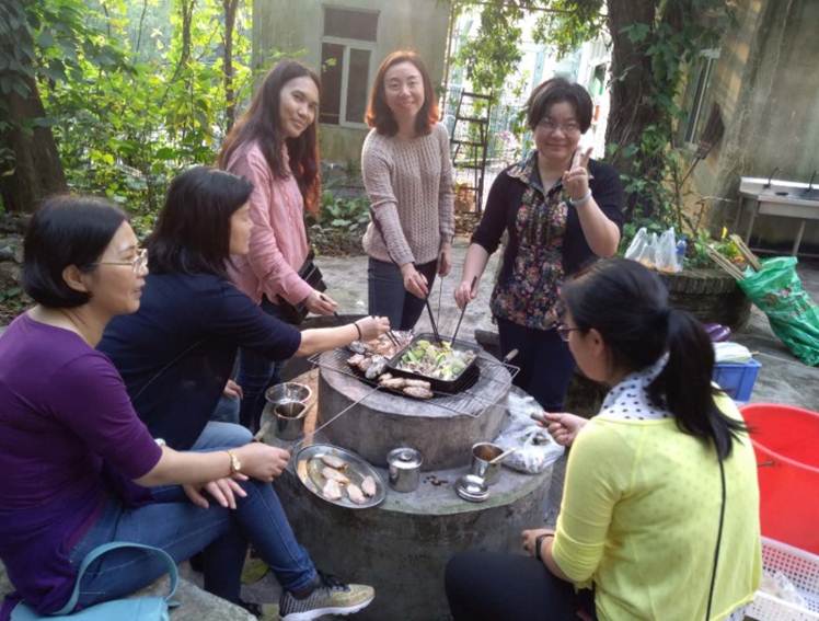 紧接着户外拓展活动的,是轻松又美味的烧烤环节。活动准备了丰富的食材供老师们“大展厨艺”,现场还出现了将烧烤做成火锅效果的创意厨神。大家一边烧烤,一边谈工作、话家长,整个活动现场充满了欢声笑语。烤场周围,花明桂馥;烤场内部,香气四溢。