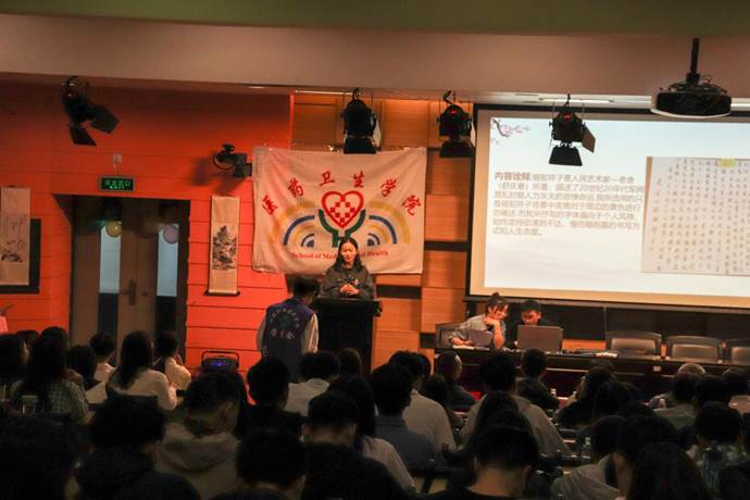 本次大赛以“歌颂祖国七十华诞,演绎青春二十芳华”为主题,通过全校性初赛严格筛选,软笔组、硬笔组、绘画组共30份作品进入决赛,决赛由选手作品展示与汇报,评委即兴提问,和评分颁奖三个环节组成。