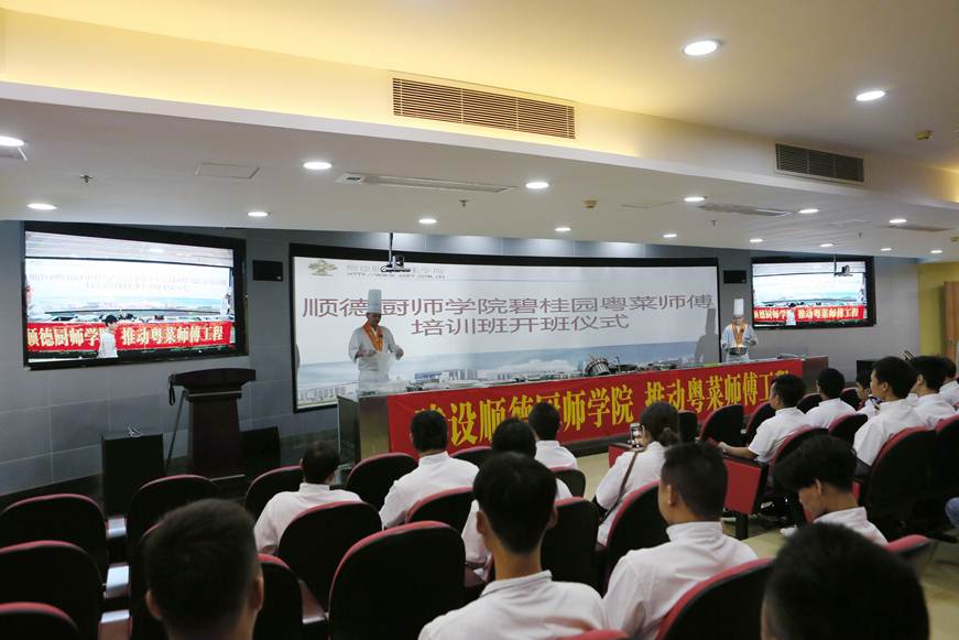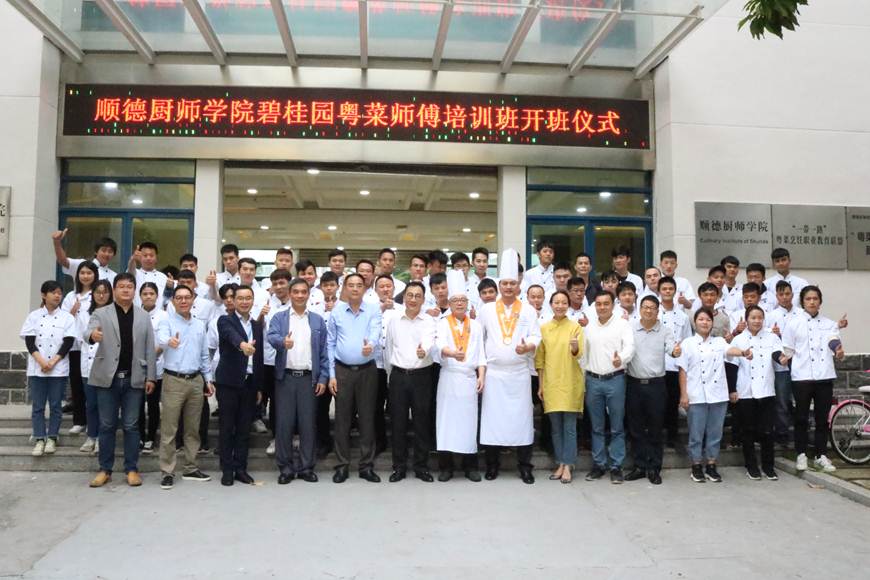 5月8日上午,“顺德厨师学院碧桂园‘粤菜师傅’工程第一期培训班”开班仪式在顺德职业技术学院烹饪实训中心举行。碧桂园集团党群社责部副总经理、国强公益基金会副秘书长刘刚,顺德区饮食协会常务副会长、龙江镇饮食协会会长谭学忠,龙江镇饮食协会副会长冯敏、张成基,学校党委副书记、纪委书记谭谦章,学校党委委员、酒店与旅游管理学院党总支书记甘慕仪,酒店与旅游管理学院、顺德厨师学院负责人,顺大资产管理有限公司负责人,来自全国4省11县的52名学员参加此次活动。本次开班仪式由顺大资产管理有限公司负责人主持。