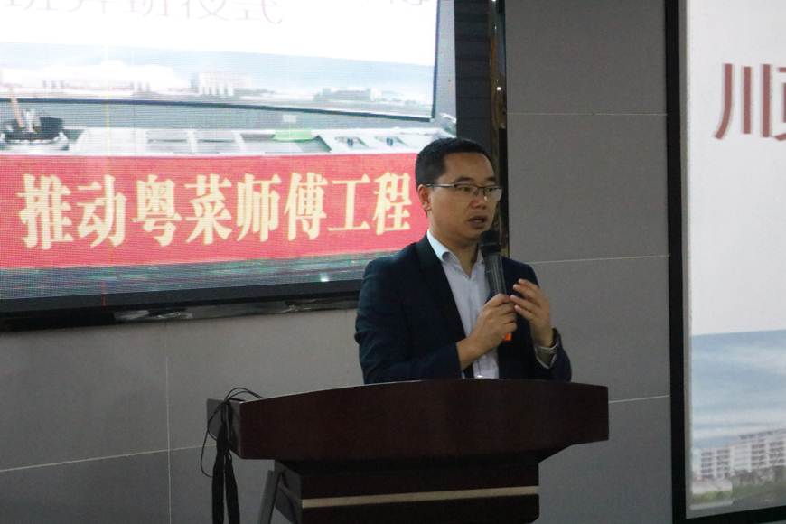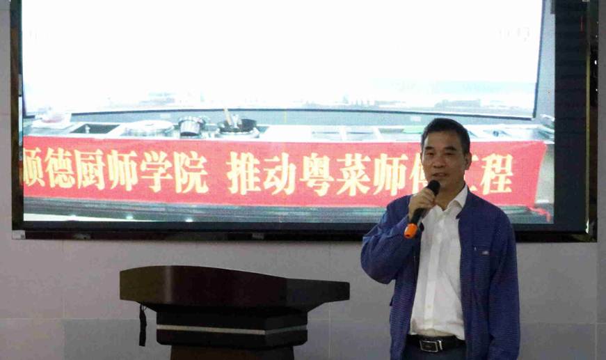 酒店与旅游管理学院、顺德厨师学院负责人介绍了本期厨艺培训班的重点课程,并强调本次培训特色是由顺德名厨担任师父,将传统的师徒传承与现代烹饪教育有机结合。