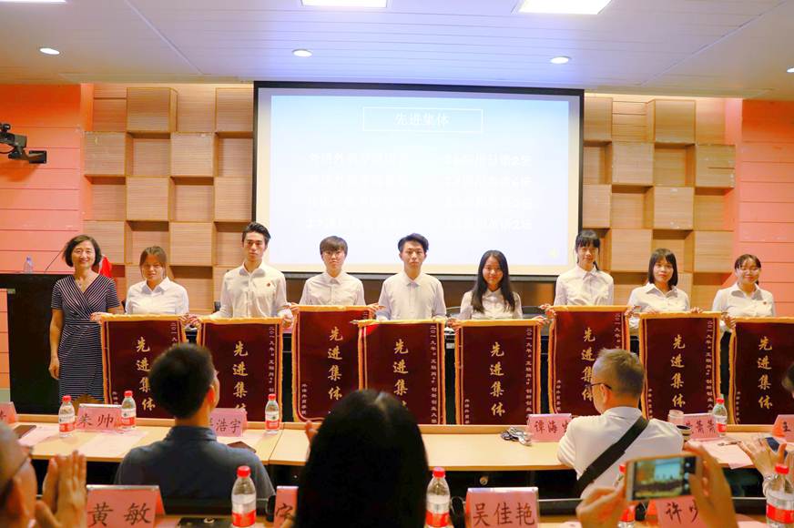 在表彰环节,外语外贸学院对在此次互动中涌现出来的优秀作品、优秀指导老师和先进集体进行表彰,并为他们颁发证书和奖品。