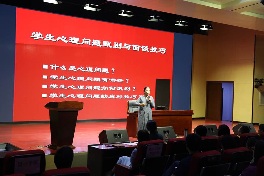 当天晚上,苏亚玲教授在6号报告厅针对全校学生工作队伍开展“学生心理问题甄别与面谈技巧”专题讲座。从当前高职学校学生的心理发展特点出发,以实例详实讲述了学生常见心理问题的甄别以及预防、干预技巧,特别是在对心理问题学生的陪护、倾听、共情等方面,苏亚玲教授所分享的应对学生心理危机的方法和技巧,引起了在场老师的共鸣和认可。