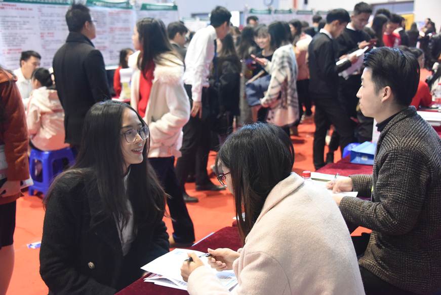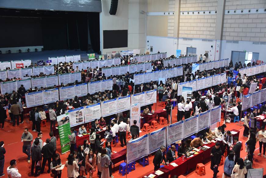 在招聘会现场,用人单位HR热情介绍企业文化、职位信息,在结合招聘计划、岗位要求以及学生应聘意向后,为应聘学生进行现场面试。应聘学生精心准备、积极参与,对心仪企业及岗位都上前咨询了解,满怀信心地参加了现场面试。