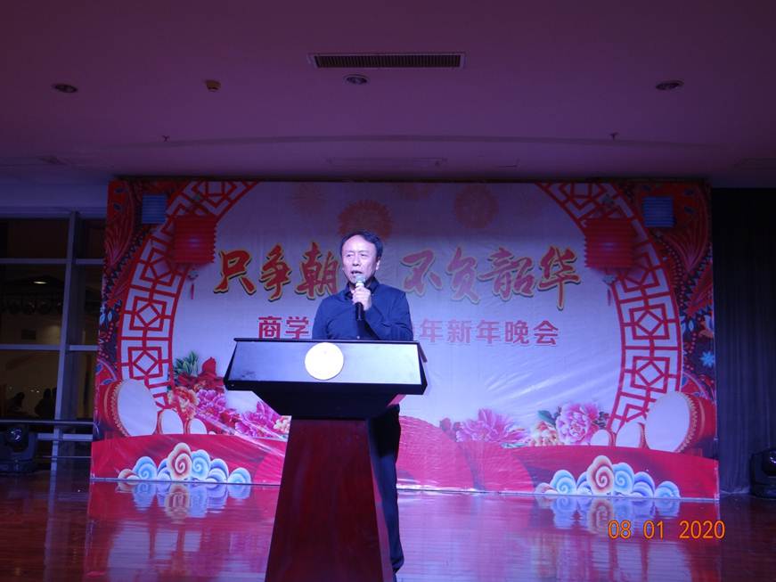 2020年1月8日晚上,主题为“只争朝夕,不负韶华”的商学院2020年新年晚会于学校教工之家顺利举行。商学院领导、全体教职工及家属逾80人参加了本次活动。