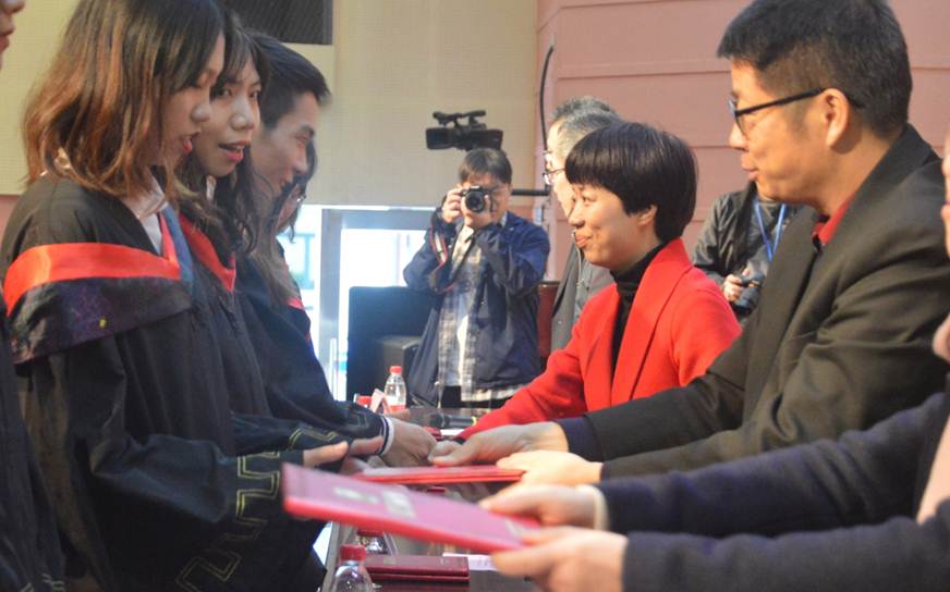 典礼最后,继续教育学院相关负责人宣读了授予毕业证书及优秀毕业生表彰的文件。出席典礼领导分别为毕业生颁发毕业证书,为优秀毕业生颁发荣誉证书。