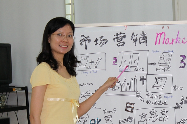 初执教鞭:入校第一年,江颖晖老师在从事学生工作的同时也承担每周18节英语课的教学任务。作为非师范毕业生,她深知自己在教书育人方面需要付出更多的努力。她虚心请教,苦练教学基本功,积极探索高效的工作方法。很多个晚上,她都是忙完了学生活动,在快十一点的时候,又开始新一轮的工作——备课。当倦意频频袭来时,她心中总有一种信念在支撑着。有时在深夜刚刚躺下,学生生病,又马上起来送他们去医院。在双肩挑的情况下,第一学期结束,她的教学评价位居全校教师前15%;同年,她被评为“优秀辅导员”。