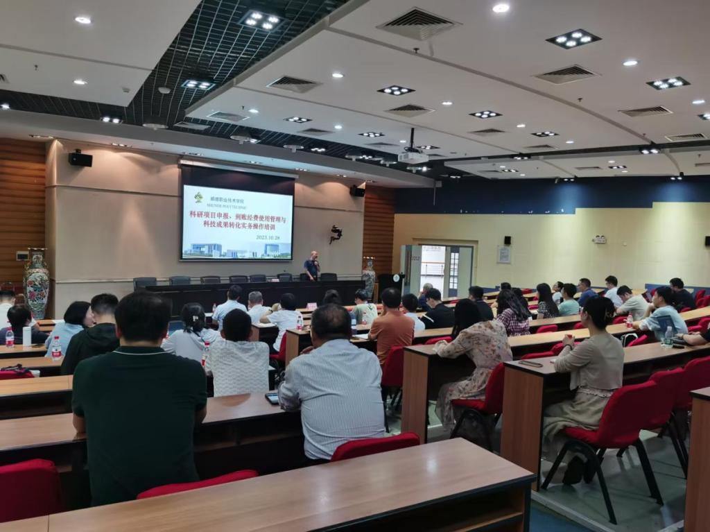 10月28日下午,学校在学术交流中心2212报告厅开展科研项目申报、经费使用与科技成果转化实务操作培训,邀请中南大学三位专家作专题讲座。培训由科技处处长张良桥主持,学校中青年博士及相关教师参加培训。