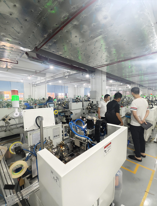 调研环节中,智能制造学院许振兴博士凭借在工业自动化控制、智能机器人研发等领域深厚的专业积累,围绕乔晶电子生产自动化系统提升需求展开深入分享。林鉴才总经理全面介绍企业发展历程、业务布局,并阐述现阶段企业在磁性元器件材料研发、生产自动化系统升级方面面临的技术瓶颈与迫切需求。最后,在企业人员陪同下,校方及街道代表参观企业展厅,深入了解乔晶电子的核心产品与技术优势。