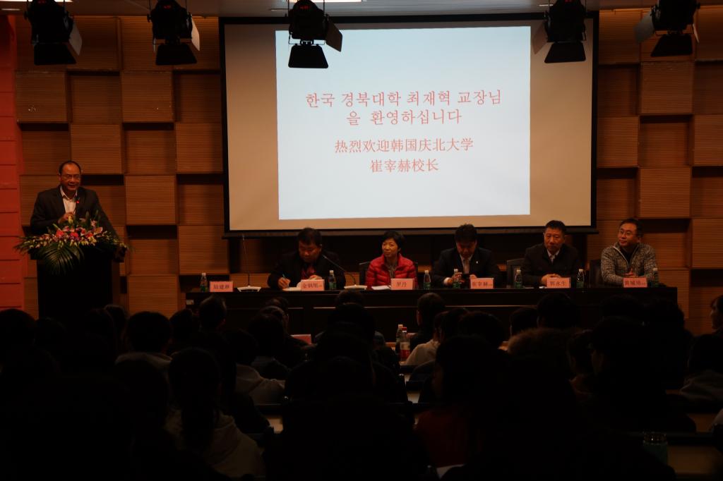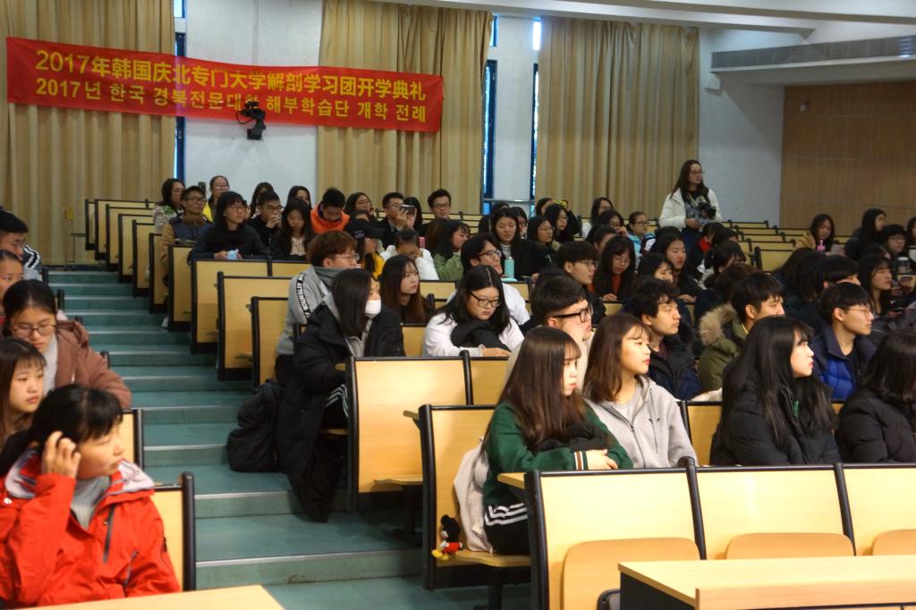12月18日,韩国庆北专门大学解剖学习团师生一行38人抵达taptap,开始为期一周的解剖学实操学习。19日上午,学校在5号学术报告厅为韩国解剖学习团进行了简短而又隆重的开学典礼。韩国庆北专门大学校长崔宰赫、国际交流学院院长金炳旭、理疗系主任黄成培,taptap校长助理罗丹、国际交流与合作处负责人、医药卫生学院负责人及师生代表共200多人参加了典礼。典礼由医药卫生学院负责人主持。