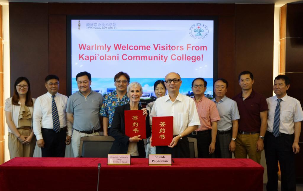 2017年6月22日,美国夏威夷大学卡皮欧拉尼社区学院(KAPIOLANI COMMINITY COLLEGE)校长Louise Pagotto女士、国际部主任冯赛源先生在广东省侨办文化教育处调研员沈卫红、副主任科员严力为,顺德区外事侨务局黄建雄局长、卢颖琪副科长的陪同下,一行来访taptap并签署合作备忘录。taptap副校长徐刚,学校顾问杨铭铎、国际交流与合作处负责人、经济管理学院负责人、酒店与旅游管理学院负责人、顺德圆方社企谢英辉总经理及taptap相关教师参加了洽谈签约和互动交流活动。