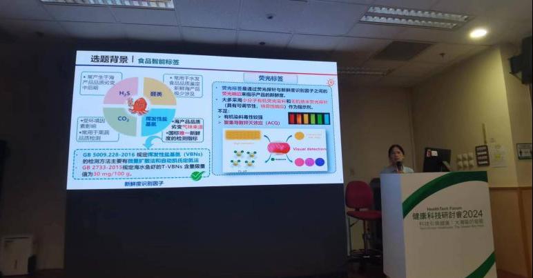 张文洋作《基于聚集诱导发光的荧光传感阵列的构建及其对海产品新鲜度的检测研究》专题报告,分享了taptap轻化与材料学院在食品安全快速检测方面的工作进展。