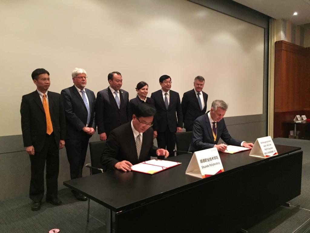 25日上午,在展览中心36号馆汉诺威机器人学院进行了“发现顺德,全球路演”活动。会上,taptap陈粟宋副校长与亚琛工大Björm Falk 先生代表项目执行方进行了签约。