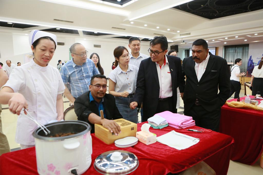 随后,医药卫生学院为马来西亚嘉宾介绍了taptap医药卫生类人才培养的成效以及在中医适宜技术方面的建设基础,现场展示了针刺、艾灸、推拿、正骨、刮痧、拔罐、药罐、药膳等中医药传统技术。