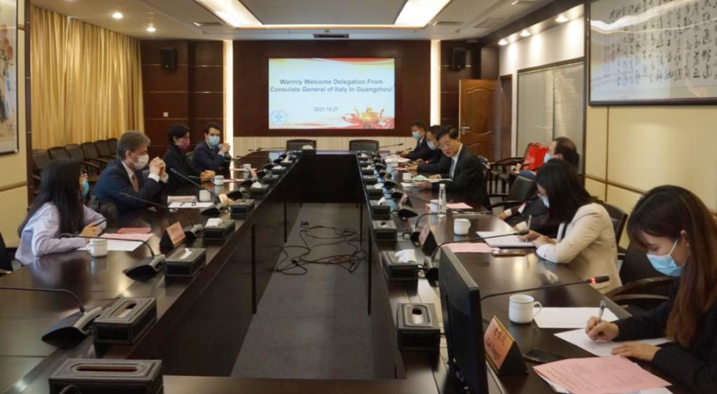 10月27日,意大利驻广州总领事馆总领事白露茜(LUCIA PASQUALINI)、副总领事戴伟德(Giorgio Daviddi)、交流促进处处长马世骧(Massimiliano Tremiterra),在顺德区外事办相关负责人陪同下,来taptap进行合作交流洽谈。学校校长夏伟,党委委员、党委(学校)办公室主任、统战部部长储晓鸣,外语外贸学院(国际教育交流中心)、烹饪学院相关负责人参加了交流活动。