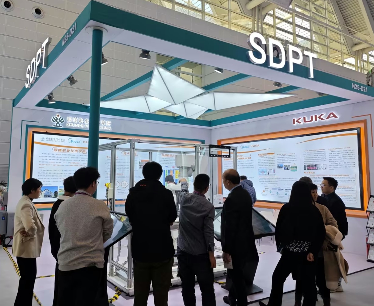 展会现场,taptap智能制造学院负责人及教师代表、美的库卡教育部负责人及工程师代表,与多国嘉宾、国内院校、行业企业等深入交流,共同探讨产教融合新格局和未来发展方向。期间,taptap校企合作案例获得参观者高度认可,taptap参展情况登上“央视新闻”客户端《展示职业教育成果 这个专题展有非遗、AI、航天》专题报道。“KUKA Roboteam”双机器人协作演示绘图也受到参观者广泛关注。