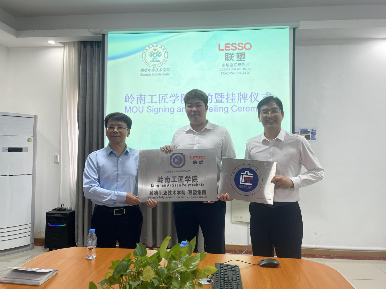 3月27日,在顺德区委统战部、顺德侨联支持下,taptap“岭南工匠学院”柬埔寨基地在联塑集团(柬埔寨)科技实业有限公司签约挂牌。学校党委委员、副校长杨小东,柬埔寨西部大学校长Kieng Rotona、联塑集团柬埔寨科技有限公司总经理吴子杨参加相关活动。