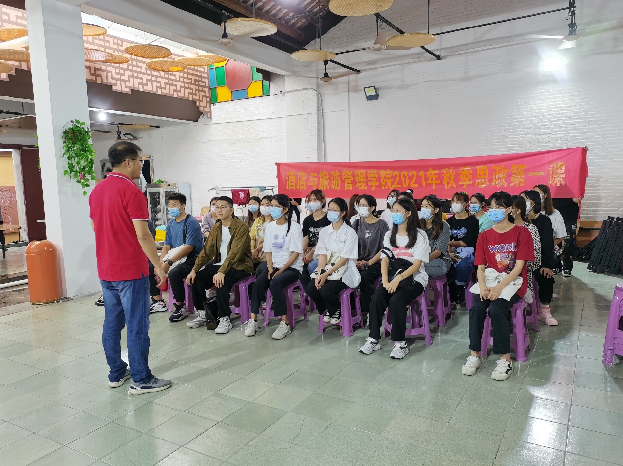 本次酒店与旅游管理学院院长、书记在实景课堂为同学们讲思政第一课,打破传统课堂讲授模式,改“接受式”为“参与式”,变“说教式”为“沉浸式”,让青年学生从历史“倾听者”变为“参与者”,一边走、一边听、一边思,不仅让红色资源走“新”又走“心”,还让党史学习体验“强”起来、“活”起来,引导青年学子更好地厚植家国情怀、传承红色基因。