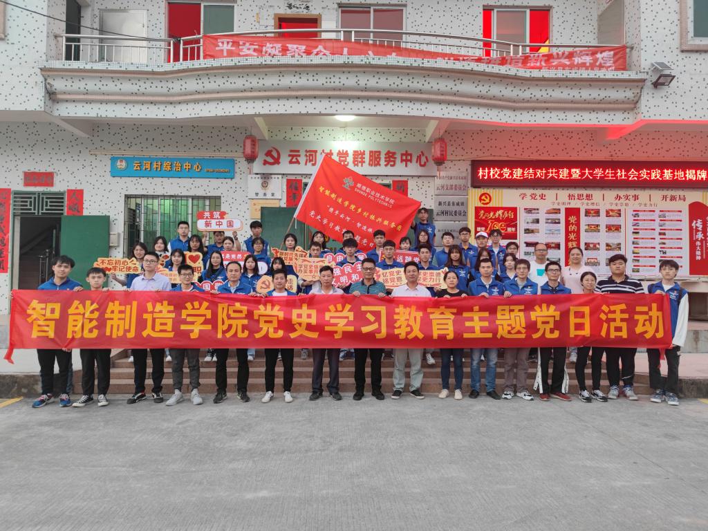 为深入学习贯彻习近平总书记在庆祝中国共产党成立100周年大会上的重要讲话精神和国家乡村振兴战略规划,引导广大师生通过参加乡村振兴社会实践活动学党史、强信念、办实事、跟党走,11月20日至21日,智能制造学院组织40余名师生赴云浮市新兴县东城镇云河村开展村校党建结对共建签约暨“携手云河乡村振兴,淬炼红色智造之魂”党史学习教育主题党日活动。