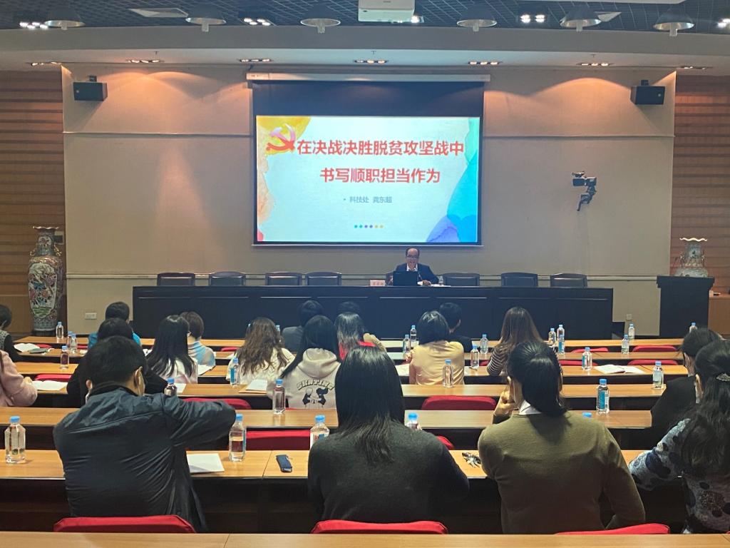 行政二党总支优秀共产党员龚东超同志于2019年3月至2021年8月期间被广东省委组织部选派到广东省雷州市纪家镇上郎村担任驻村第一书记兼扶贫工作队队长。他结合亲身经历和感受,以构建“三位一体”、打造“五六七”工程、落实“十个到位”为主线,讲述了自己驻村扶贫的点点滴滴和心路历程,表达了对学校支持、领导关怀、家人理解的感谢。他的分享内容质朴、感情真挚,体现了一名党的基层干部的为民情怀和奉献精神。
