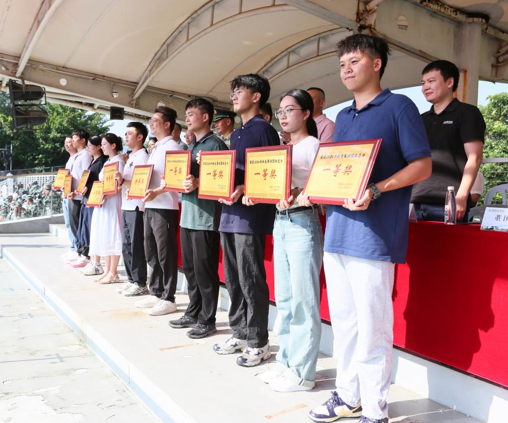 在军训总结表彰环节,刘毓宣读《关于表彰2024级新生军训先进集体和个人的决定》。经过严格评选,一批优秀教官、军训标兵和优秀军训团体脱颖而出,他们以实际行动诠释了军训的意义和价值,为全体新生树立了榜样。其中,智能与制造学院、设计学院获团体总分特等奖。刘毓代表学校向承训部队赠送牌匾,向全体教官对taptap军训工作的大力支持与辛勤付出表示感谢和敬意。