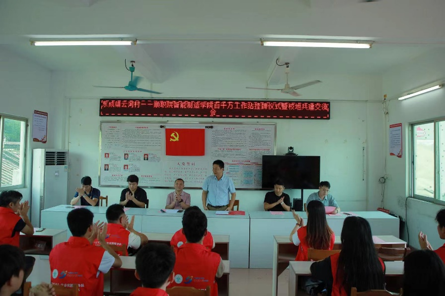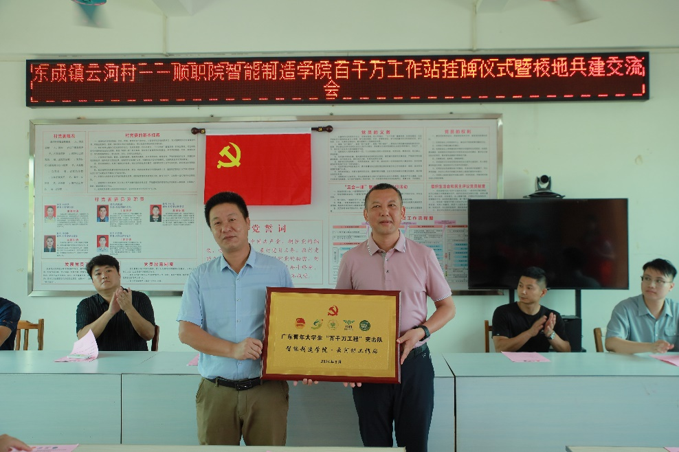 双方致辞后,饶喜明和叶超华为百千万工程“智能制造学院·云河村工作站”结对揭牌。