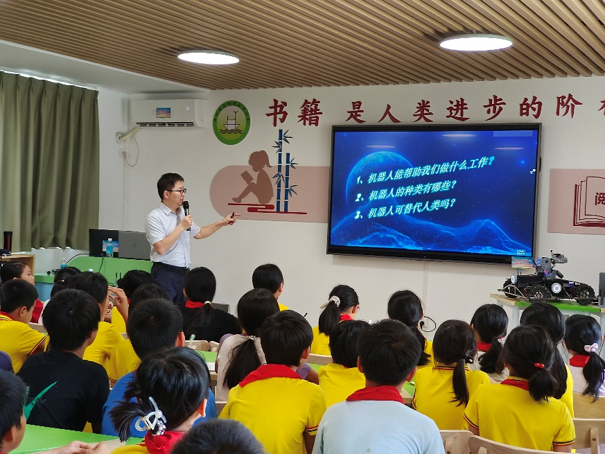 智能制造新技术科普实践队与义修义剪服务队是结合学院办学特色组建的。该支队为当地学校学生展示了自主研发智能机甲战车的结构与玩法,并结合学院教师专业特长,组织举办《智能制造科普与智慧物流》专题科普知识讲座,并提供义修义剪服务。