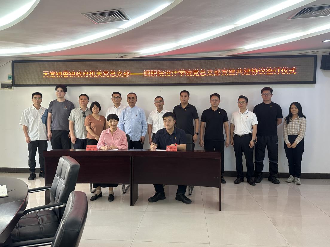 设计学院院长姚美康向天堂镇领导介绍了学院基本情况,并表示,在落实“双百行动”中,学院一定找准定位、明确方向,以实干笃行推进乡村建设,将专业优势、人才优势和科技优势转化为推进这一头号工程的实际行动。天堂镇党委委员黄建业代表天堂镇镇政府机关党总支与设计学院党总支签订了党建结对共建协议。