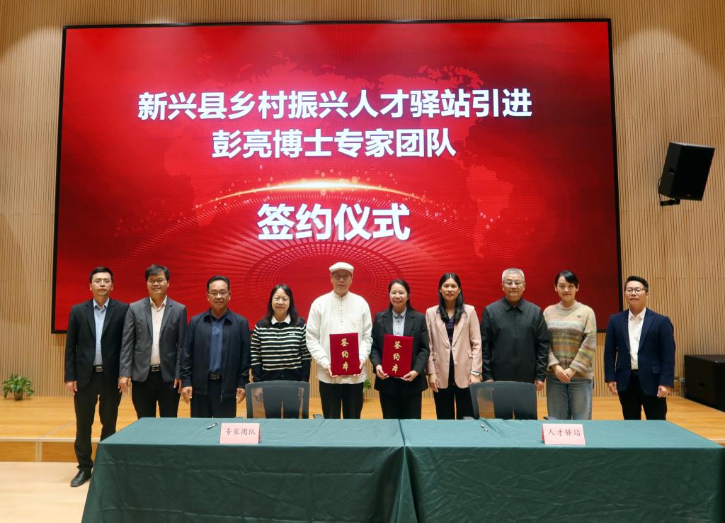 活动中,新兴县乡村振兴人才驿站与彭亮教授签订专家进站协议。