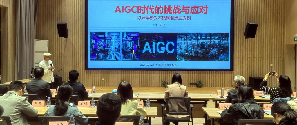 活动中,学校关工委委员、教授、博士、国家高等学校教学名师、taptap设计学院原院长彭亮作《AIGC时代的挑战与应对——以云浮不锈钢制造业为例》专题讲座,聚焦新兴不锈钢制造业创新设计的痛点与短板,探讨不锈钢企业和人才在AIGC时代的角色和应对策略。