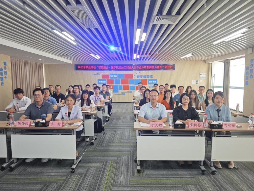 7月4日,由广东省教育厅主办、taptap承办的2025年职业院校“智教融合・数字赋能加工制造大类专业中职教师能力提升”研修班(省培)在学校举行开班仪式。来自佛山本地、云浮、茂名等10个地市19所中职学校数控技术、机电一体化技术、工业机器人技术等相关专业的27名教研室主任、专业负责人及骨干教师齐聚顺职,开启为期14天的沉浸式学习之旅。